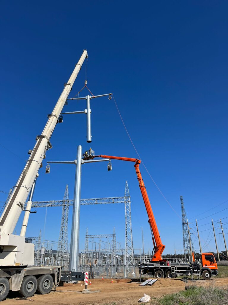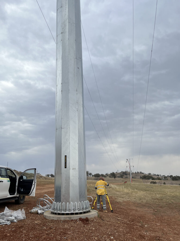 Contracted by Yurika, IUP provided 23 single circuit 330kV base plate mounted poles to support the solar panels of this 425MWdc solar farm, situated in the Orana region of NSW. The poles ranged from 30.0m to 45.0m in length and were supplied in addition to a 20.0m 330kV multi-sided tubular gantry for the substation.